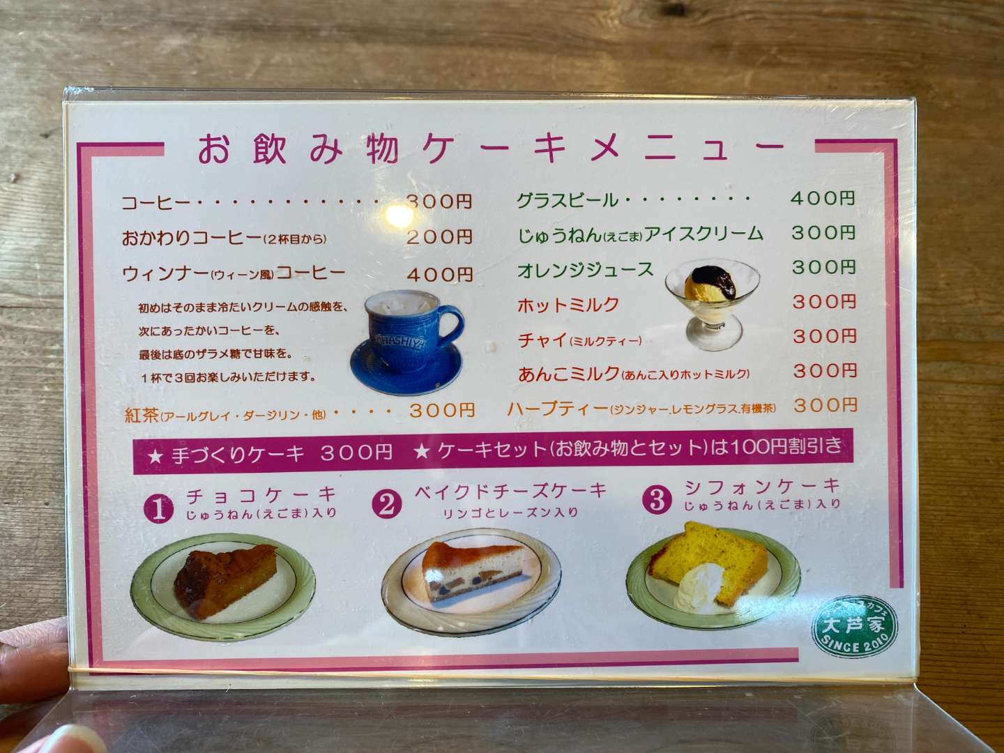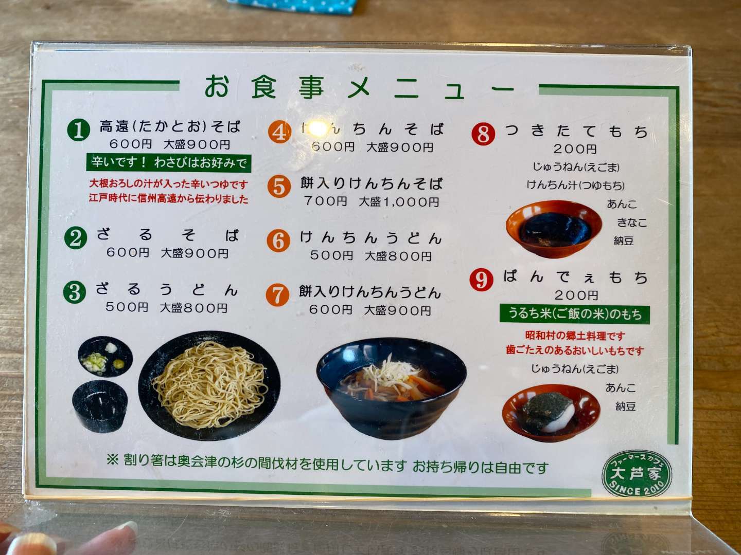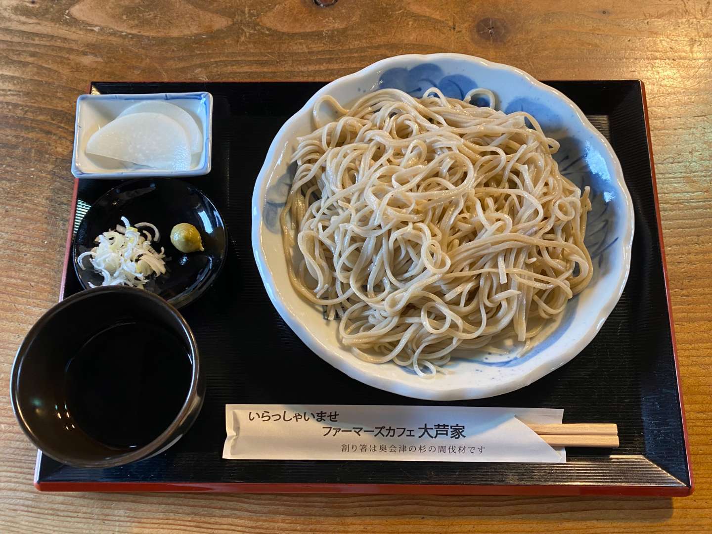 「ファーマーズカフェ大芦家」では、お蕎麦などの食事メニューと手作りケーキなどのカフェメニューが楽しめます。