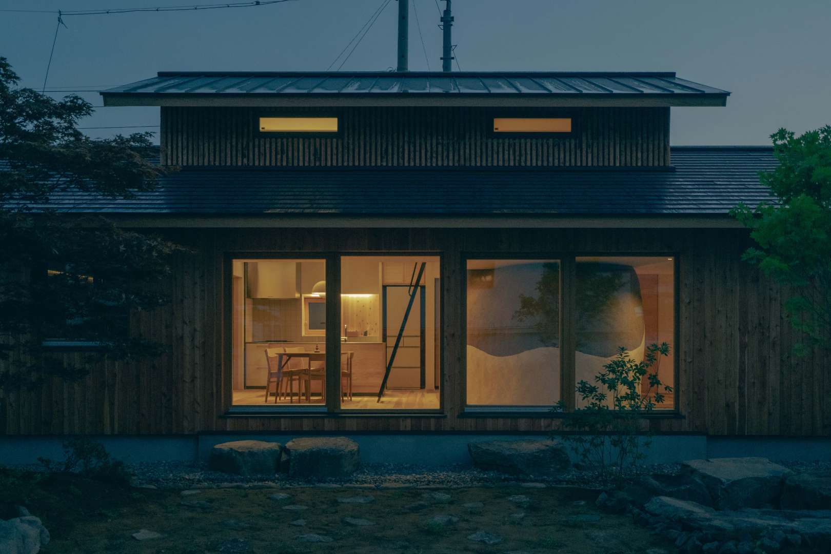 HUCOSでは、タテログを採用することで、建物全体に統一感とリズムを生み出します。縦のラインが視覚的な高さを強調し、開放感のある空間を演出。また、木材が持つ自然な木目や色合いが、光の当たり方によって様々な表情を見せ、住まいに温もりと趣を与えます。