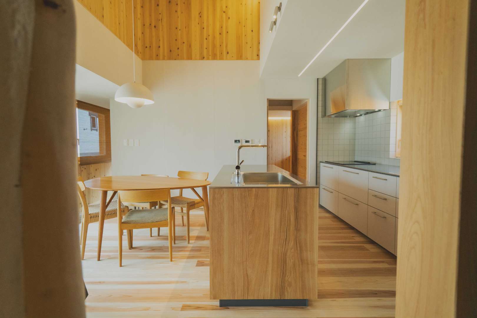 高品質なタテログの壁材と、無垢材などの自然素材の採用。