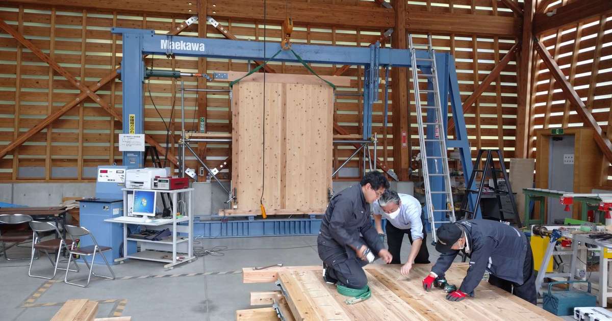 パネルログ構法のさらなる使い勝手の良さを追求するために、新しい仕様の耐力壁を設計し、壁面内せん断試験を行いました。