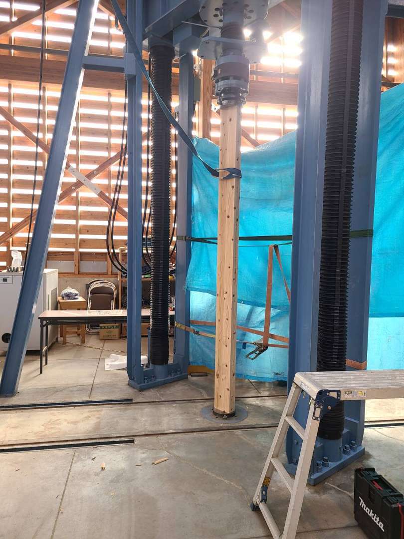 木材をビスで留め付けるNLT構法による「合わせ柱」の強度試験を、福島県林業研究センターにて、行いました。