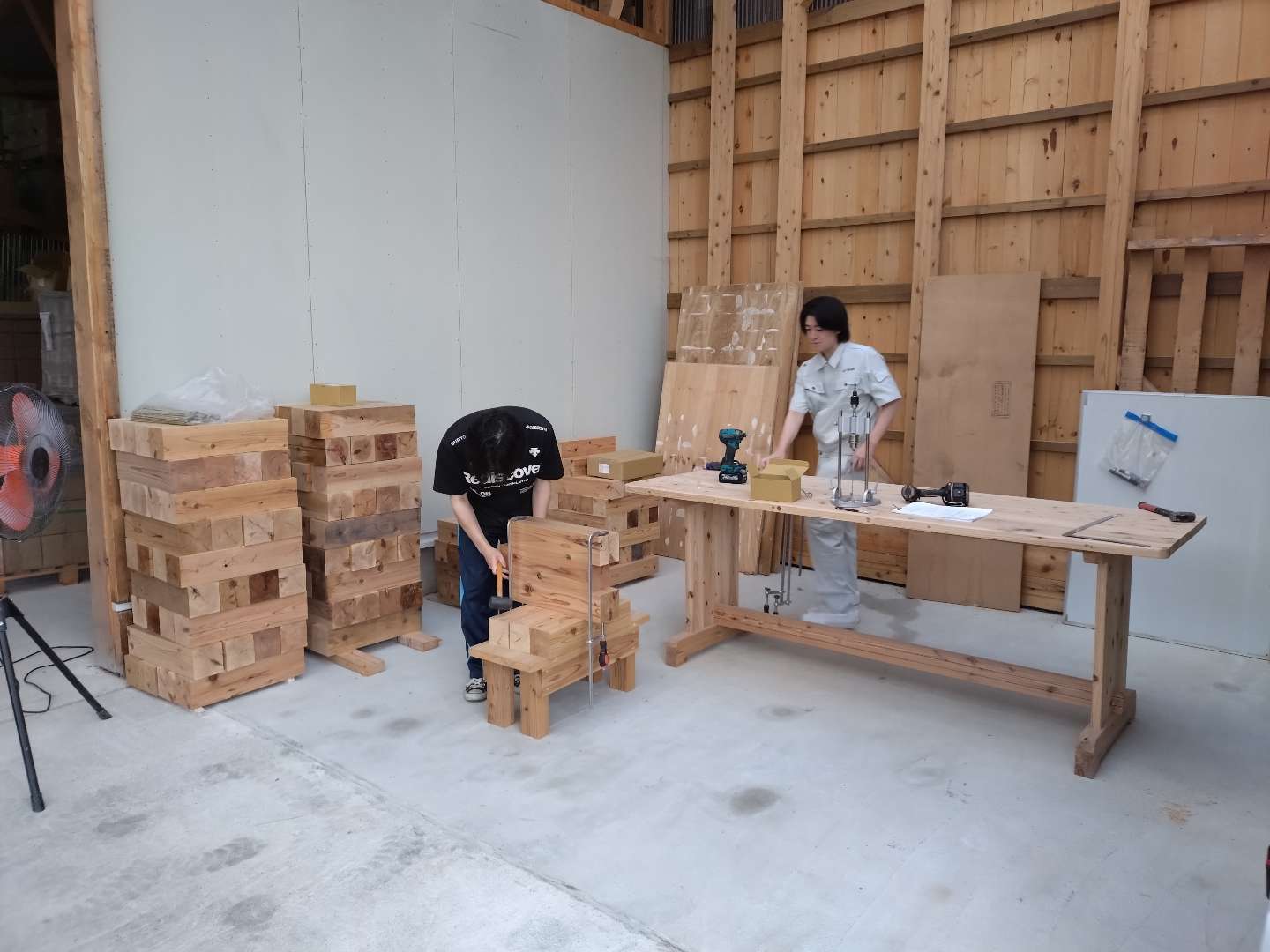 木質構造用ネジのせん断強度試験用試験体を作成しております。