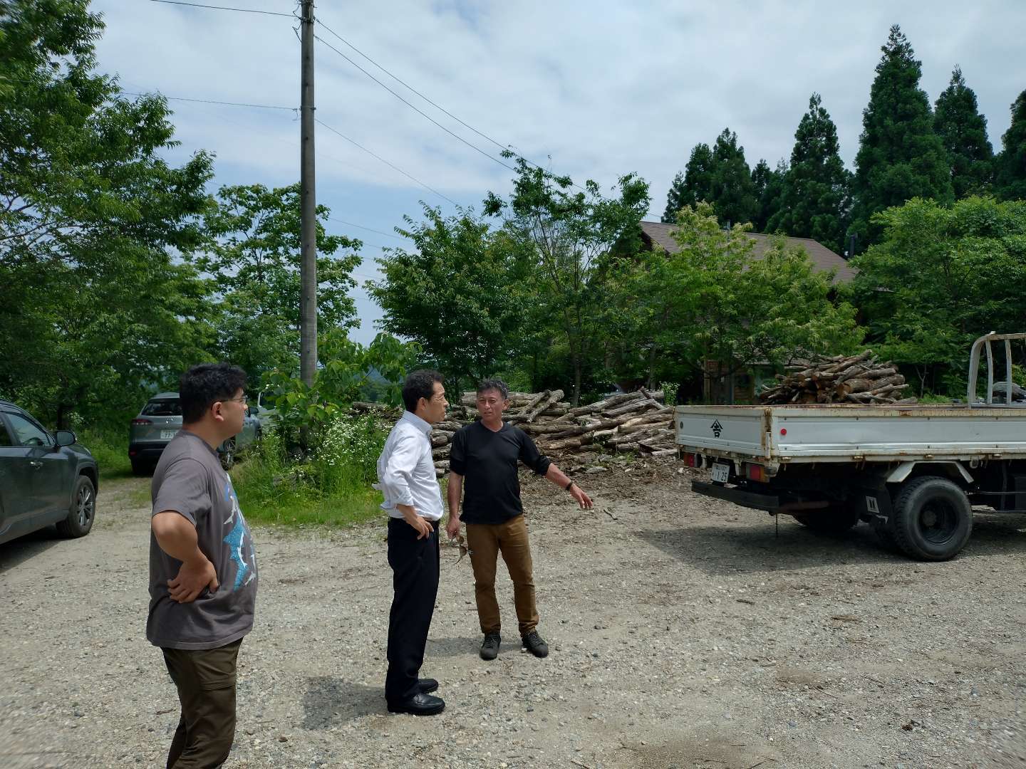 富山県の「鶴巻育林サービス」の中川さんの工場や土場等を視察させていただきました。