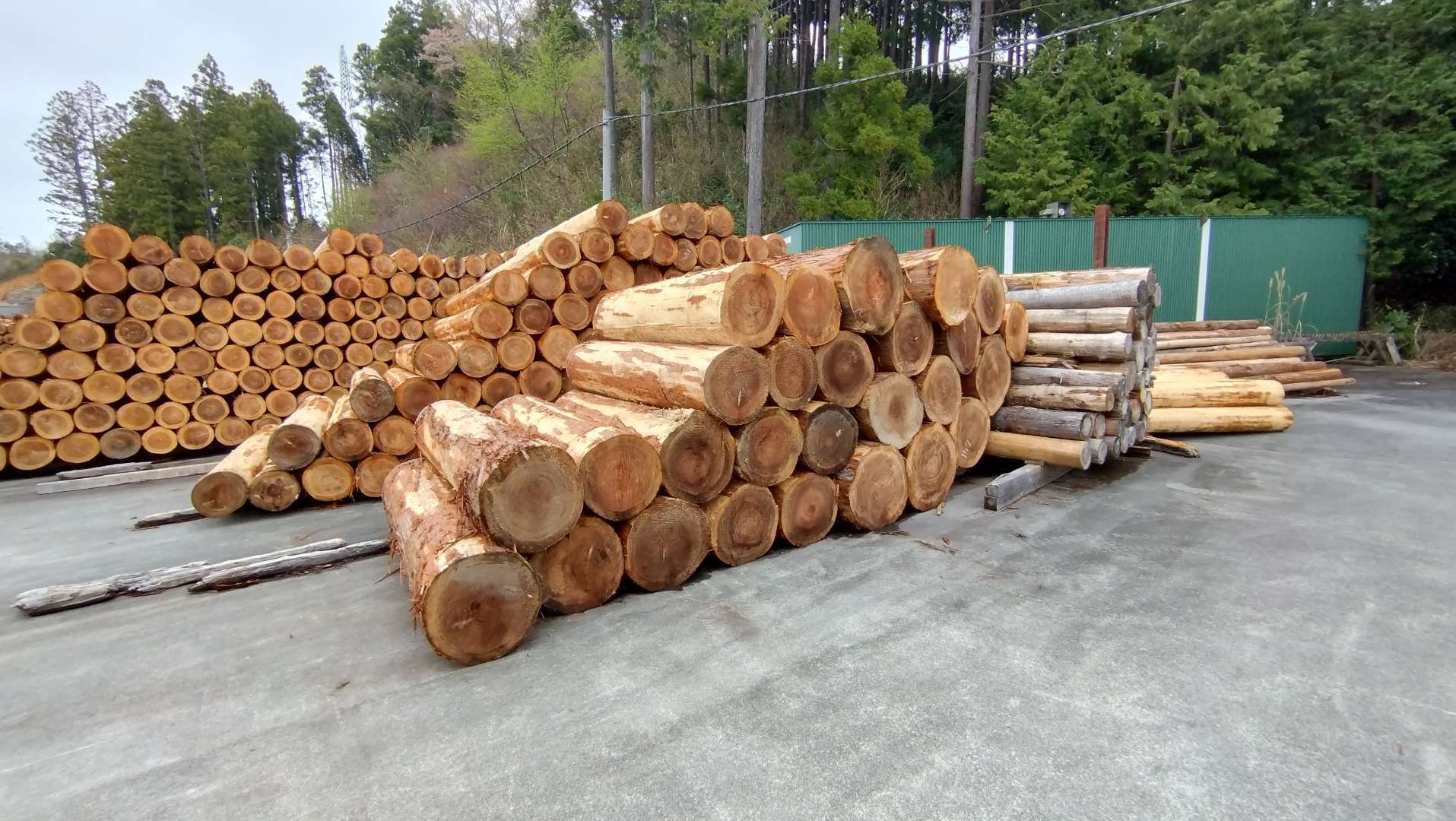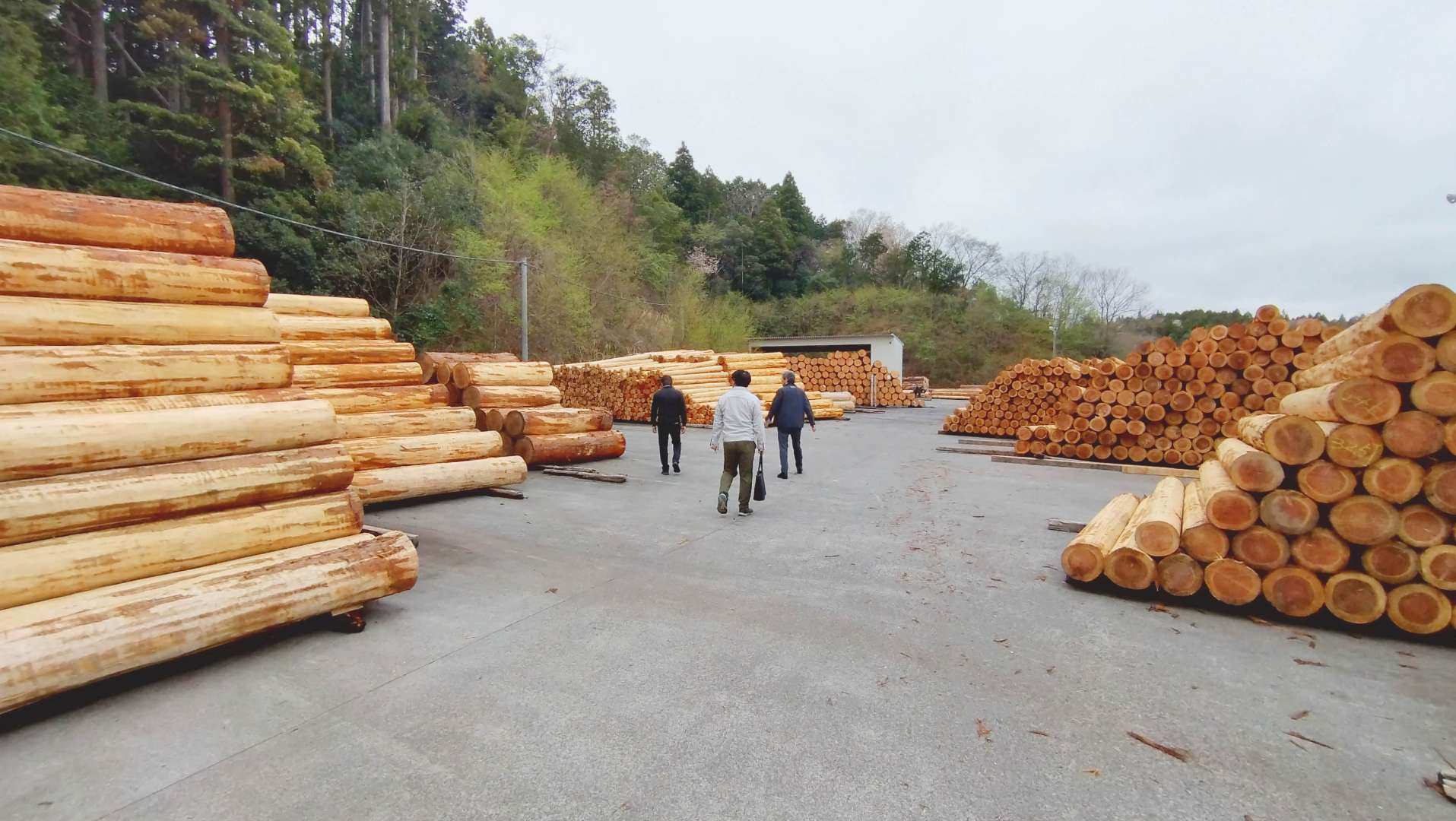 タテログの原材料となる、スギの原木丸太を視察しました。