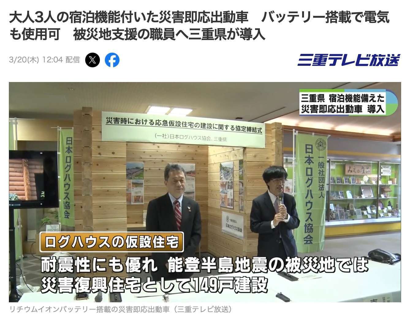 3月19日(水)、弊社が所属している一般社団法人日本ログハウス協会が、三重県と応急仮設住宅の建設に関する協定を締結いたしました。
