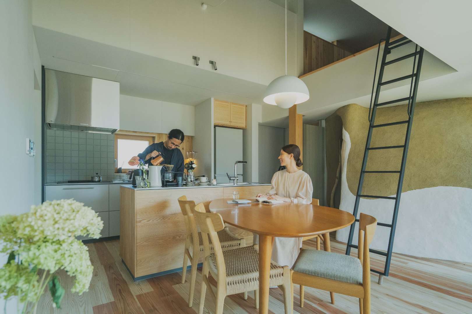 一部ロフトとした平屋の住まいは、自然素材ならではの優しい風合いとスタイリッシュを併せ持った素敵な空間です。