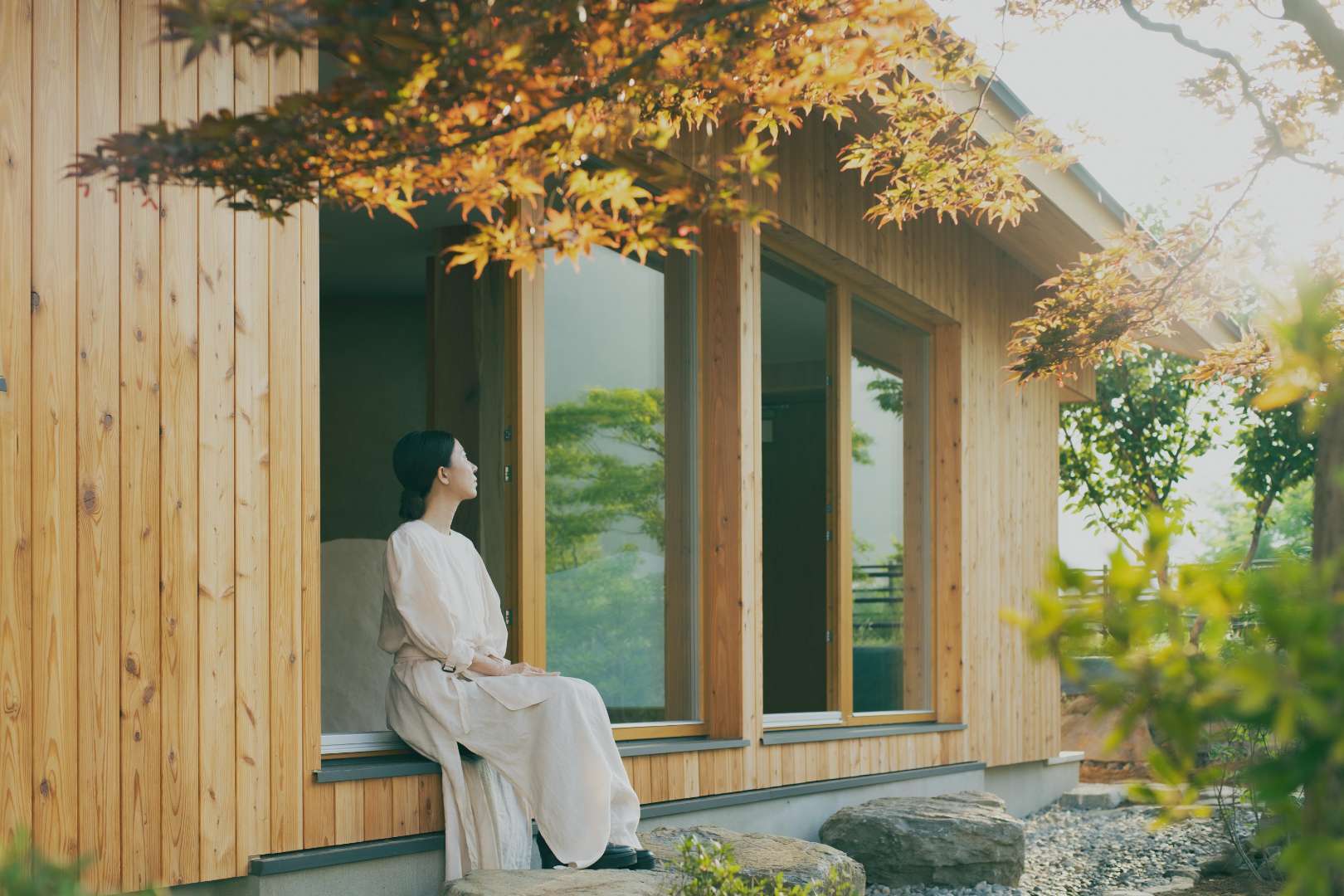 「人と自然がつながり共生する 自然素材の暮らし方を体験」をコンセプトに、壁部には120mm厚のタテログと木質系断熱材(STEICO[シュタイコ])、窓部に木製サッシを採用しています。