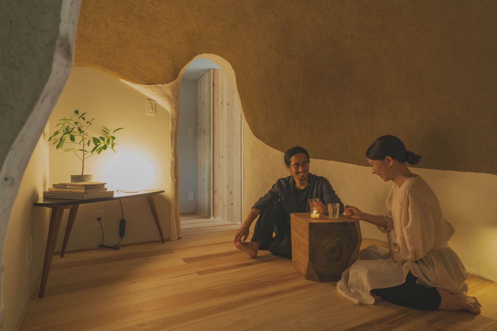 また、建築とアートの融合をコンセプトに、室内には 美術家 小池雅久 が手掛けた土の蓄熱ドームが設けられています。(写真:蓄熱ドーム内)